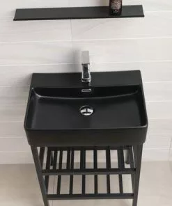 Tuscany® Thatcher 23-3/8″W X 16-5/8″D Black Rectangle Console Sink With Base | Modern Bathroom Sink