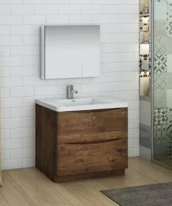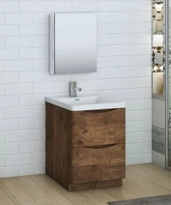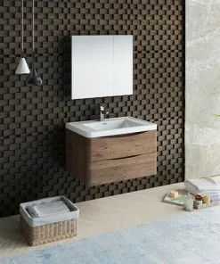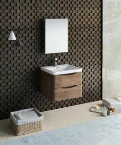 Fresca Tuscany 24″ Rosewood Wall-Hung Vanity with White Acrylic Top & Integrated Rectangular Bowl