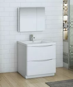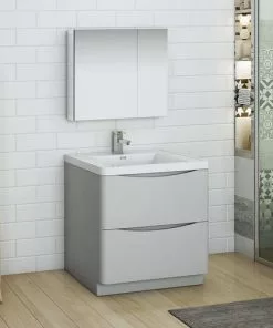 Fresca Tuscany 31.5″W x 19″D Glossy Gray Vanity with White Acrylic Top & Integrated Rectangular Bowl