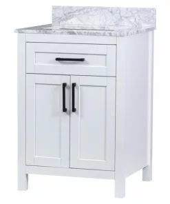 Tuscany® Ravenna 24″W X 22″D White Vanity with Gray Natural Marble Top & Rectangular Undermount Bowl