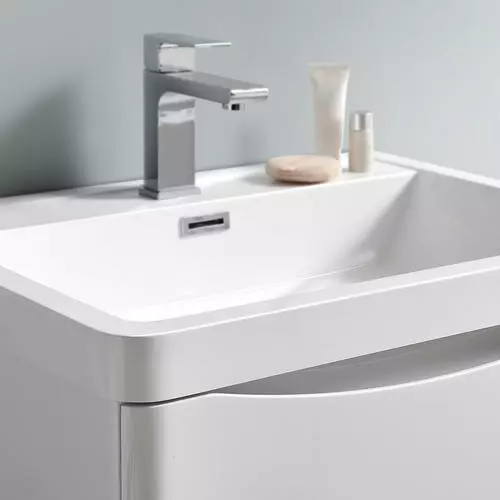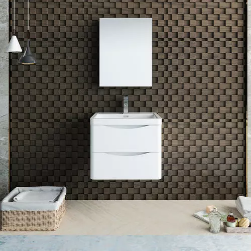With its stylish White finish, the Fresca Tuscany Wall Hung Modern Bathroom Vanity adds a contemporary touch to any bathroom. The cabinet offers great storage with soft-closing drawers, just perfect for organizing all of your daily essentials. The drawers feature integrated handles that beautifully complement the minimalist look. Gracing the top of the cabinet is an eye-catching white acrylic-resin countertop/sink with a unique rimmed edge and integrated overflow. The sink has been pre-drilled to accommodate a single hole faucet (included). The set also includes p-trap, pop-up drain and installation hardware. This vanity comes with a fully mirrored medicine cabinet with two adjustable glass shelves, to complete the look. This chic vanity ensemble is available in multiple colors and makes a stylish statement in any home.