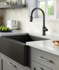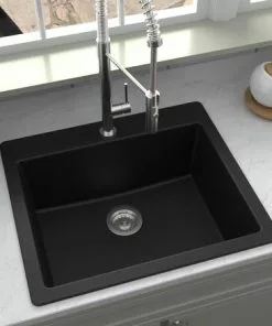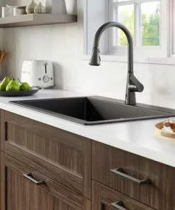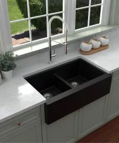 Tuscany Dual Mount 33″ Black Quartz Composite 1-Hole Double Bowl Kitchen Sink – Durable & Stylish