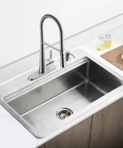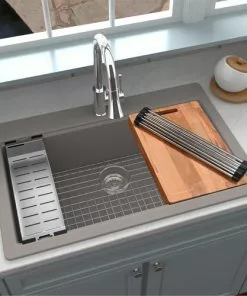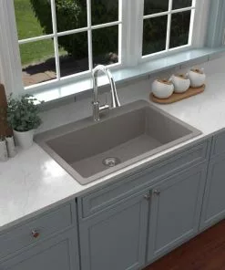 Tuscany Dual Mount 33″ Concrete Quartz Composite 1-Hole Single Bowl Kitchen Sink – Durable & Stylish