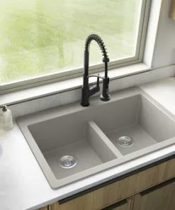 Tuscany Dual Mount 33″ Concrete Quartz Composite 1-Hole Double Bowl Kitchen Sink | Durable & Stylish