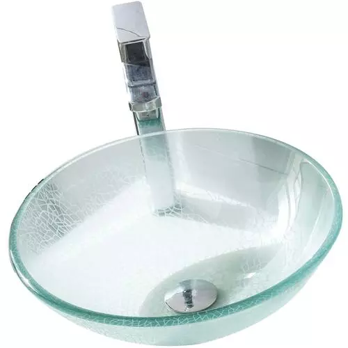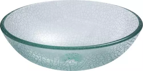 - Elevate your bathroom décor with the Tuscany® 16-1/2″W Cracked Glass Round Glass Vessel Sink. Its unique cracked glass design adds a touch of modern elegance to any space.