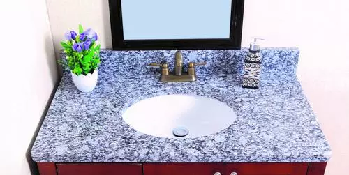 Update while adding value to your bathroom with this beautiful, durable, maintenance free 31″ long x 22″ deep x 3CM thick solid granite vanity top. Each and every piece of granite is a natural, unique, one-of-a-kind piece of art. The top includes a preinstalled vitreous china under mount bowl and is predrilled for a 4″ on center faucets of your choice. Each top also includes a matching backsplash as an option for installation.