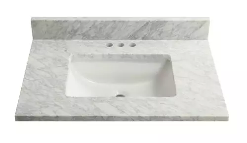 - Enhance your bathroom with the Tuscany® 31″ X 22″ Carrara Marble Vanity Top, expertly crafted from premium Carrara marble for a timeless and luxurious look.