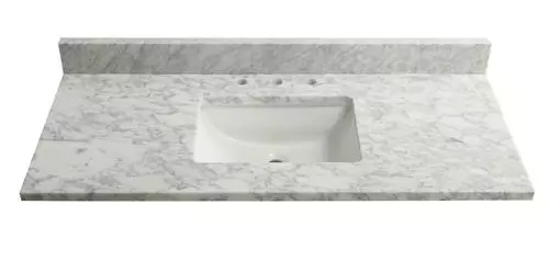 - Crafted from high-quality Carrara marble, this vanity top is durable, resistant to scratches, and maintains its pristine look for years.