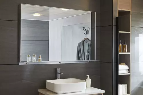 This metal framed rectangular wall mirror from Tuscany is a sleek, contemporary design that can shine in any decor, from modern, vintage, farmhouse, to mid-century. It’s ideal over a single or double bathroom vanity, but can also serve as a high-quality accent piece in an entryway, bedroom, living room, or dining room. The aluminum frame resists flaking, cracking, and water damage. Constructed of premium-quality glass, the mirror’s reflection is crisp and distortion-free. Authentic silver backing on the glass prevents corrosion in high-humidity environments. The integrated shelf provides a place for convenient storage with quick and easy access. Hardware is included to allow for easy, secure installation in a horizontal orientation. Installation guide, drywall anchors, and screws are included for wall mounting.