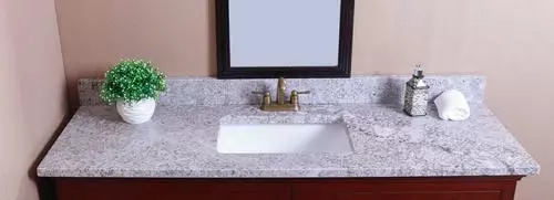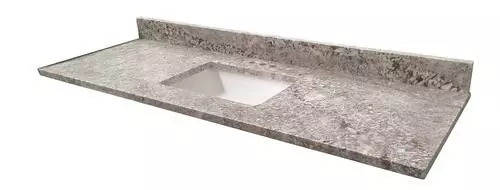 Update while adding value to your bathroom with this beautiful, durable, maintenance free 61″ long x 22″ deep x 3CM thick solid granite vanity top. Each and every piece of granite is a natural, unique, one-of-a-kind piece of art. The top includes one preinstalled vitreous china under mount bowl and is predrilled for a 4″ on center faucet of your choice. Each top also includes a matching backsplash as an option for installation.