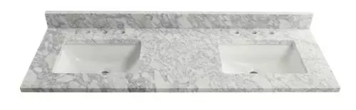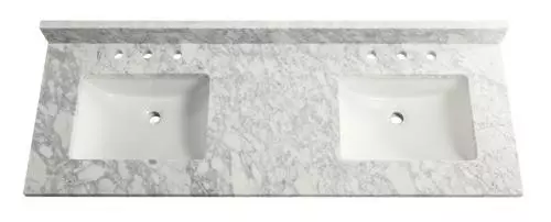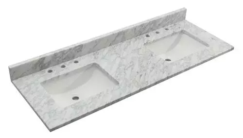 - Elevate your bathroom décor with the Tuscany® 61″ X 22″ Carrara Marble Vanity Top. Crafted from high-quality Carrara marble, this vanity top combines elegance with durability.
