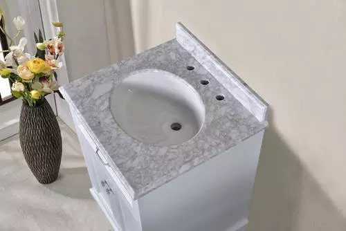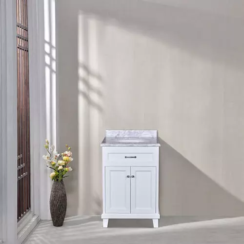 - Includes cabinet, marble top, ceramic bowl and backsplash