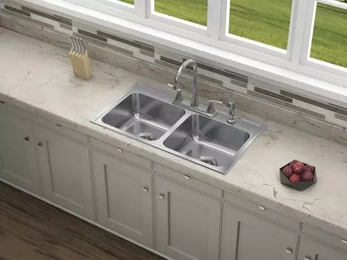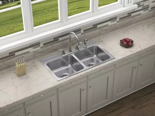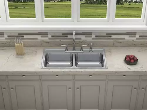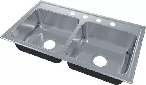 The Baytown 33″ x 19″ x 7″ is a drop-in double bowl sink. This premium grade 304, 22 gauge stainless steel sink is fully coated underneath with heavy duty sound deadening pads that help insulate the bowl. The Baytown comes with U-channel clips, installation instructions, cutout template and a limited lifetime warranty.