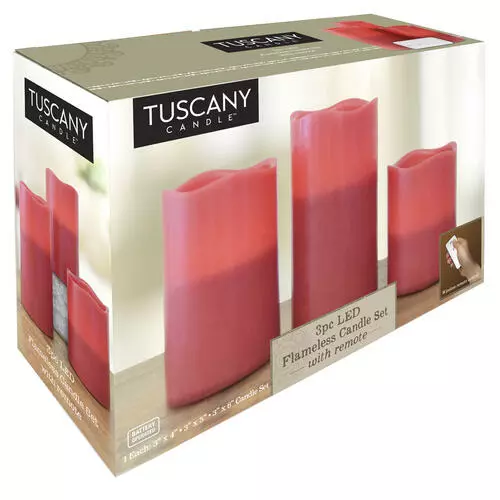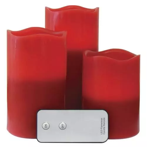 - Includes 3″, 5″, and 6″ flameless pillar candles