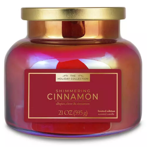 - Experience the warm and inviting aroma of Shimmering Cinnamon with Tuscany Candle™’s 21 oz iridescent jar candle. Perfect for creating a cozy ambiance in any room.