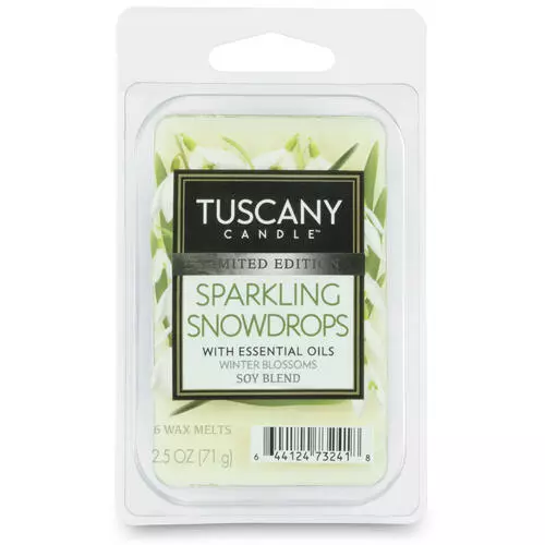 - Experience the enchanting fragrance of Sparkling Snowdrops with Tuscany Candle’s premium wax melts. Each pack contains 6 high-quality wax melts designed to fill your home with a fresh and elegant scent.