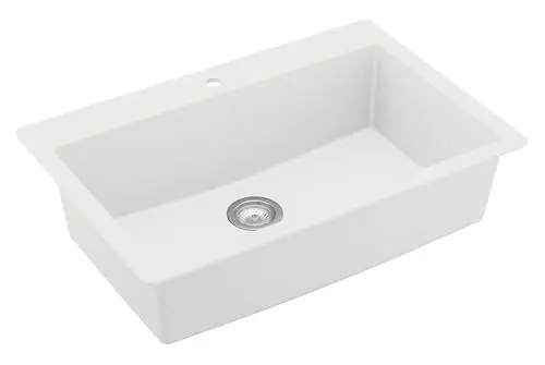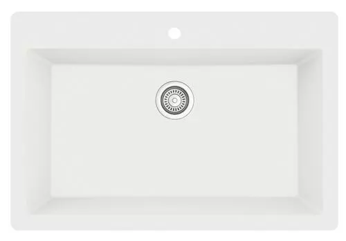 This stylish Tuscany® single bowl sink suits all kitchen styles. It is constructed from a durable quartz composite material that makes it resistant to heat, scratches, chipping and staining. Offered in black, grey and white, this Tuscany® sink boasts great performance with crisp, clean styling. As a dual-mount design, it can be installed both as an undermount or as a top mount.