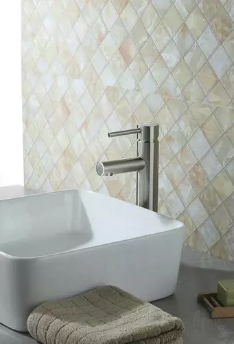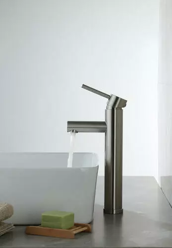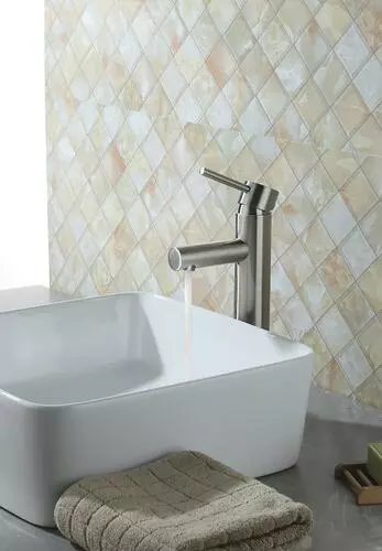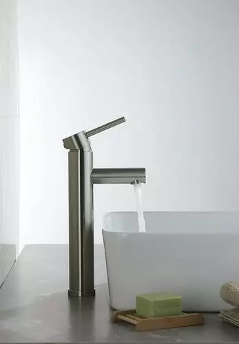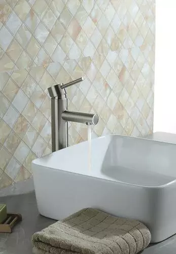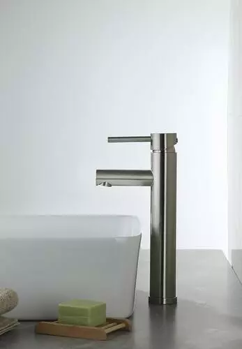 The Tuscany® Forden one-handle vessel bathroom faucet in brushed nickel will be the star of any bathroom. It is designed for single hole installation. The 7-13/16″ high and 4-1/16″ long one piece solid cast brass spout with a stylish zinc handle that will blend with any decor. The Forden vessel bathroom faucet comes with a unique push-style pop-up drain that accommodates lavatories with or without overflows. The brass and copper waterway construction meets the AB 1953 low lead standard. This faucet is 100% pressure tested and has a limited lifetime warranty for years of worry free use. All Tuscany® bathroom faucets use premium ceramic cartridges for years of drip-free use.