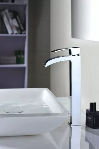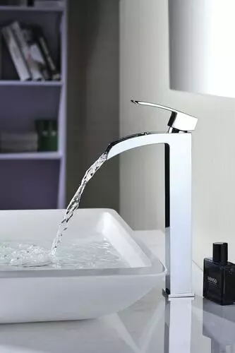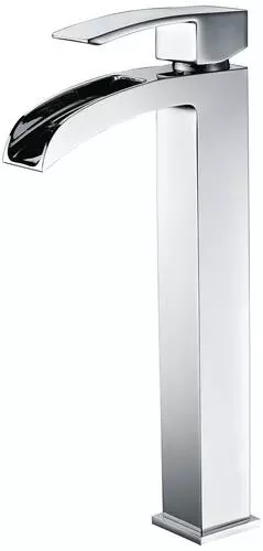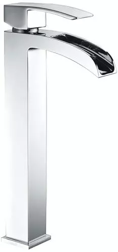 The Tuscany® Free Fall, trend-setting one-handle waterfall-style vessel bathroom faucet, is in a polished chrome finish and is both contemporary and durable. The 8-13/16″ high and 4-11/16″ long brass spout with a total height of 11-11/16″ is perfect for any bathroom. The unique push-style pop-up drain accommodates lavatories with or without overflows. This is a single hole installation. The copper and brass waterway construction meets the AB 1953 low lead standards. This faucet is 100% pressure tested and has a limited lifetime warranty for years of worry free use. All Tuscany® bathroom faucets use premium ceramic cartridges for years of drip-free use.