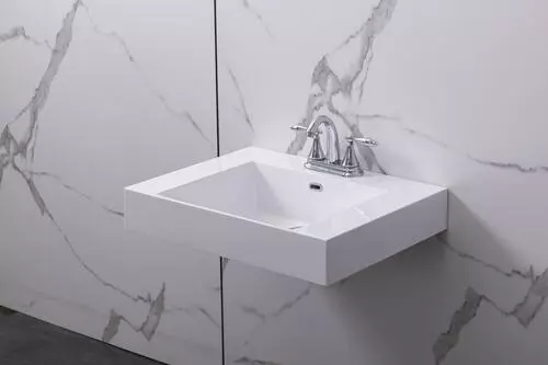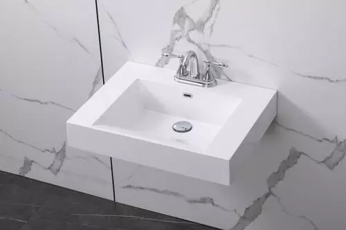 Beautiful 24″ x 18″ wall mount cultured marble bathroom sink with white finish for your bathroom, looks neat and clean. Simple design and easy to install. Including mounting hardwares.