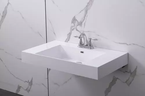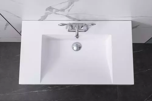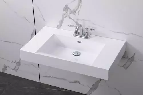 Beautiful 32″ x 18″ wall mount cultured marble bathroom sink with white finish for your bathroom, looks neat and clean. Simple design and easy to install. Including mounting hardware.