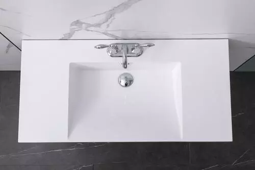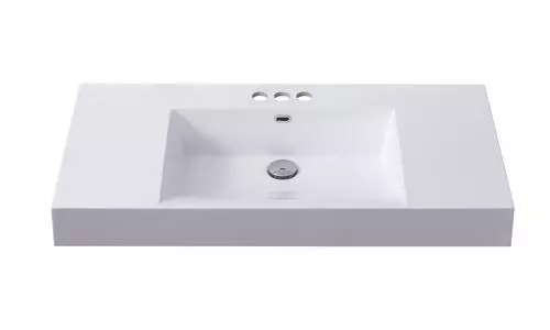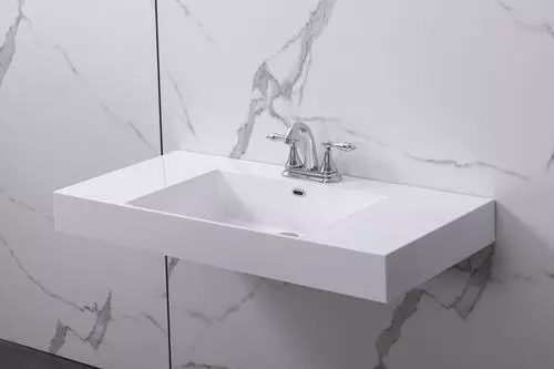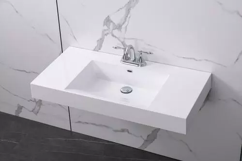 Beautiful 37″ x 18″ wall mount cultured marble bathroom sink with white finish for your bathroom, looks neat and clean. Simple design and easy to install. Including mounting hardware.