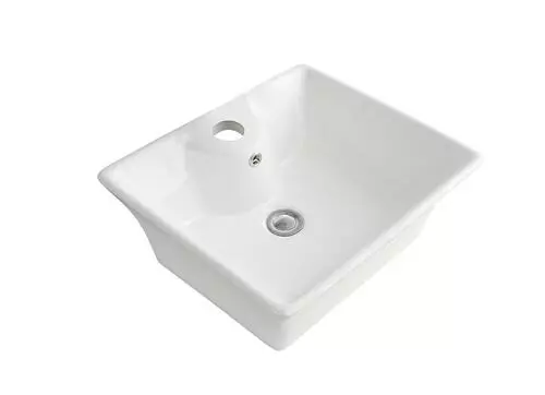 - The Tuscany® Katie Vessel Sink features a sleek white rectangular design, perfect for modern and contemporary bathroom aesthetics.