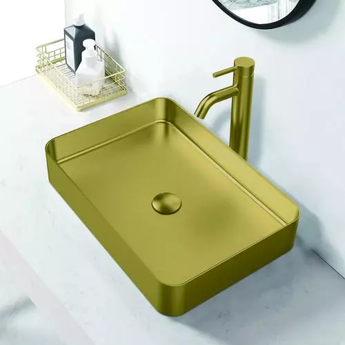Try this innovative art design vessel sink with a high-end appearance when you are tired of traditional bathroom sinks! PVD Gold surface finishing with Nanotechnology coating technology enhances the whole solidity. PVD (Physical Vapor Deposition) coating provide your stainless steel sink with an extra layer of protection that’s highly resistant against corrosion, tarnishing and fading! PVD products are highly resistant to water which means water splashes won’t stay & dry leaving any water spots. It includes a highly constructed matching pop-up drain with drain shield technology in Gold finish.