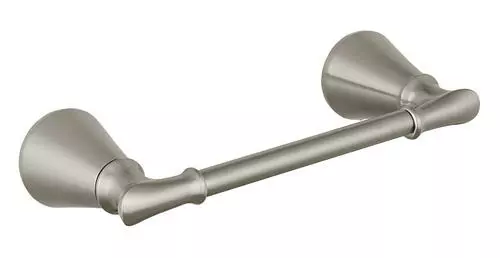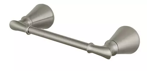 The Traditional Marianna toilet paper holder offers a beautiful and sophisticated look in a brushed nickel finish. The Marianna collection has faucets and matching bath hardware accessories to complete your bathroom design.
