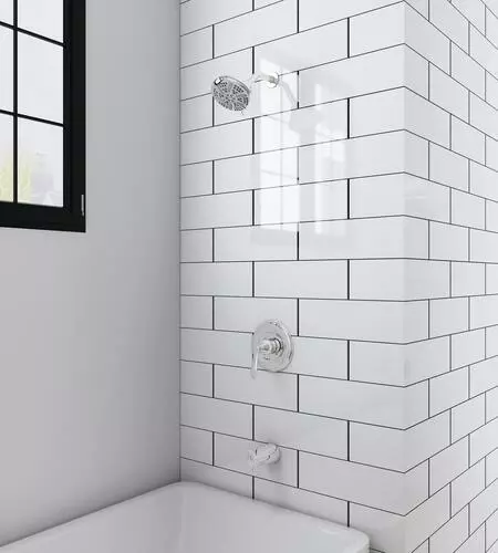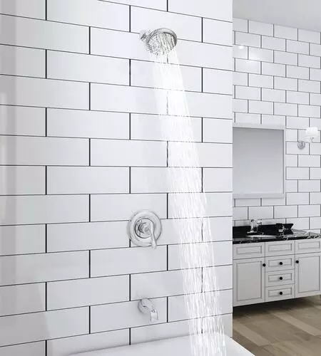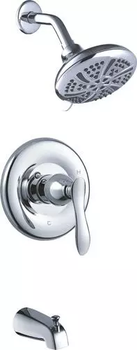 The Marianna one-handle anti-scald pressure balanced tub and shower faucet in a polished chrome finish has decorative and functional features all wrapped into one. A large 5 1/2″ round showerhead features a 5 multi-function showerhead with a matching finish face plate and a 5″ tub spout for a wonderful bathing experience. This tub/shower valve has a number of solid construction features including solid brass waterways, integral stops and the option for back to back installation. All Tuscany tub/showers have a ceramic cartridge for years of drip-free use.
