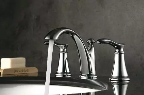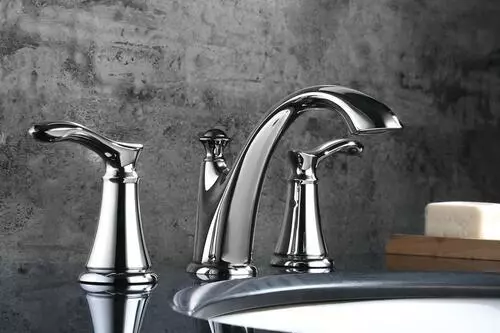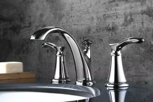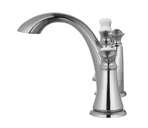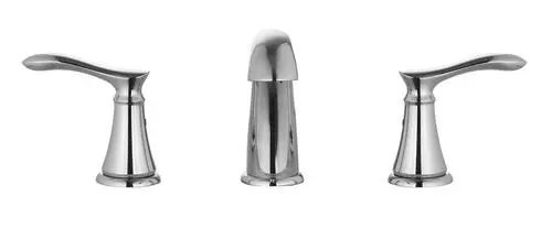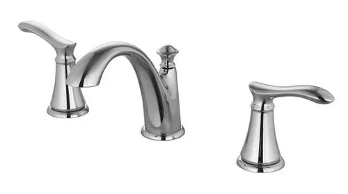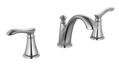 The Tuscany Marianna two-handle bathroom faucet in a polished chrome finish features a 3-7/8″ high and 4-3/4″ long one piece solid cast brass spout with zinc handles. The Marianna has a widespread 3 hole installation. The pop-up drain assembly is included. The Tuscany Marianna faucet has a flow rate of 1.2 GPM @ 60PSI.