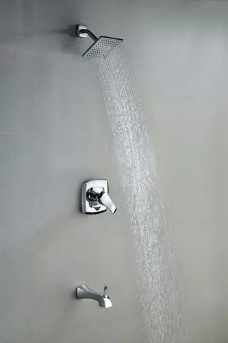 The Morey Contemporary square-style single-handle anti-scald pressure balance tub and shower faucet in. a polished chrome Finish is as stylish as it is functional. A large 6″ x 6″ square single function shower head with a matching Finish face plate and a 6-1/2″ long decorative tub spout for a Wonderful bathing experience. The Morey features a Stainless Steel square face plate with a zinc handle and a Stainless Steel shower arm. This tub and shower valve has a No. of solid construction features