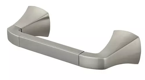 The Morey toilet paper holder, in a brushed nickel finish, has an elegant square design that will compliment any bathroom. The Morey collection has faucets and matching bath hardware accessories for a well rounded, elegant bathroom layout.