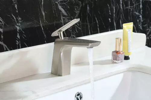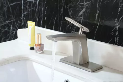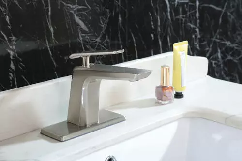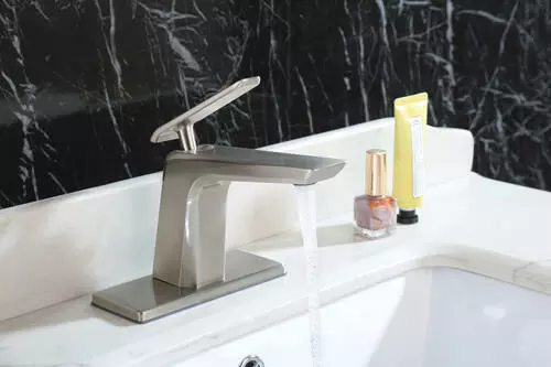 The Tuscany® Onaka one-handle 4″ centerset bathroom faucet in a brushed nickel finish will combine function and style for a modern motif that will accent any bathroom. This faucet can be installed as a three hole installation or a single hole by removing the deck plate. It includes an easy clean push style pop-up drain with “Drain Shield” assembly. This faucet is 100% pressure system tested and has a limited lifetime warranty. All Tuscany® bathroom faucets use premium ceramic cartridges for years of drip-free use.
