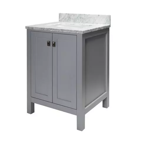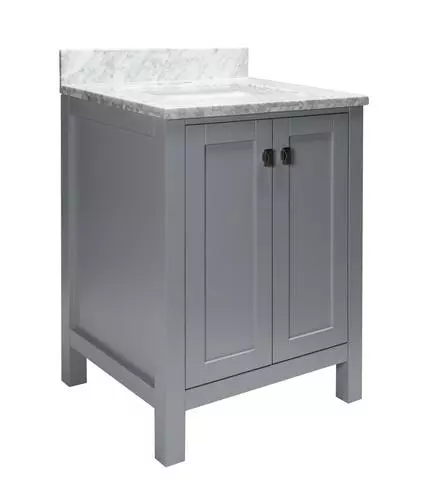 Tuscany® Rio 24″W x 22″D Gray Vanity with Natural Carrara Marble Top & Rectangular Undermount Bowl
