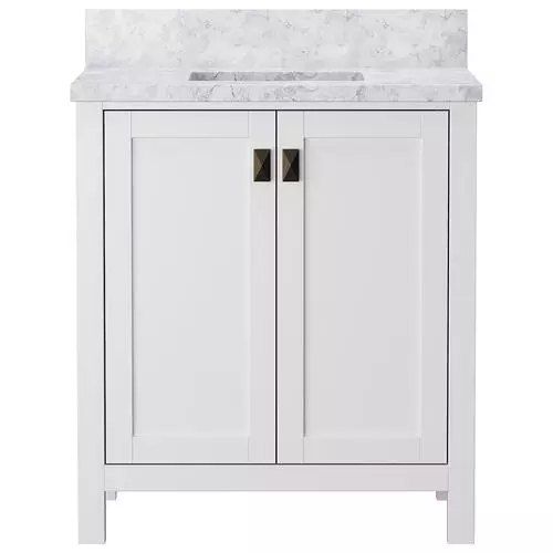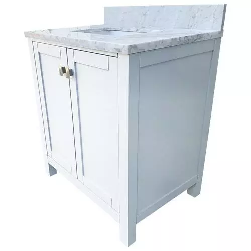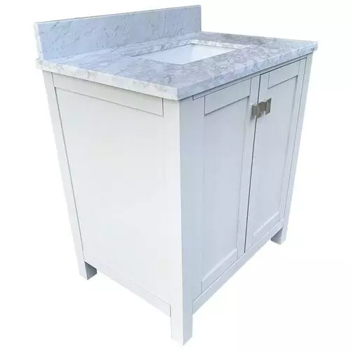 Tuscany® Rio 30″W X 22″D White Vanity with White Carrara Marble Top & Rectangular Undermount Bowl