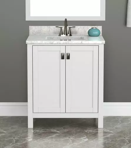 - Stylish Design: The white vanity paired with a white Carrara marble top and rectangular undermount bowl creates a sleek, modern aesthetic.