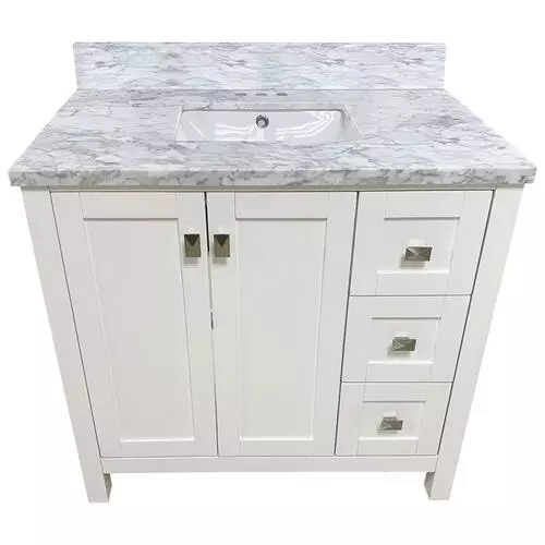 - Elegant Design: The Tuscany® Rio Vanity combines a sleek white finish with a luxurious White Carrara Marble Top for a modern bathroom aesthetic.