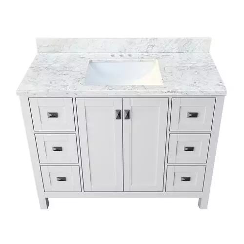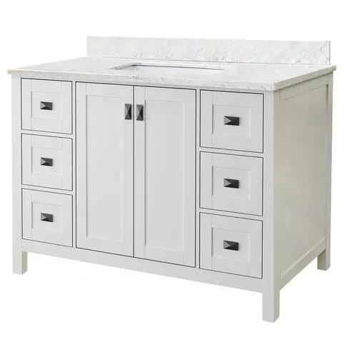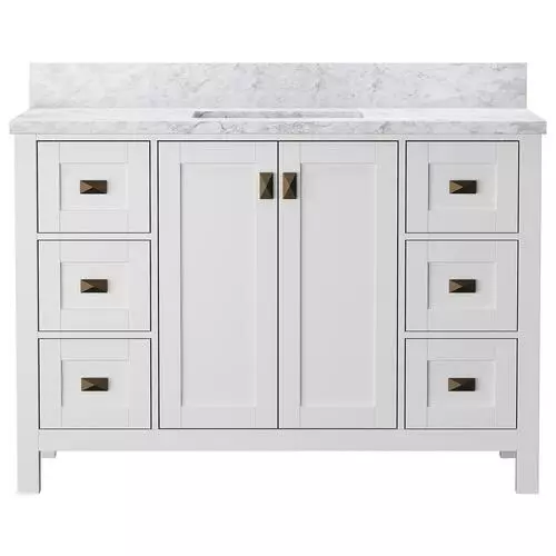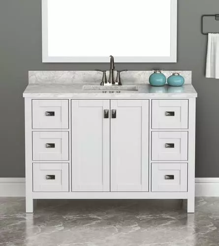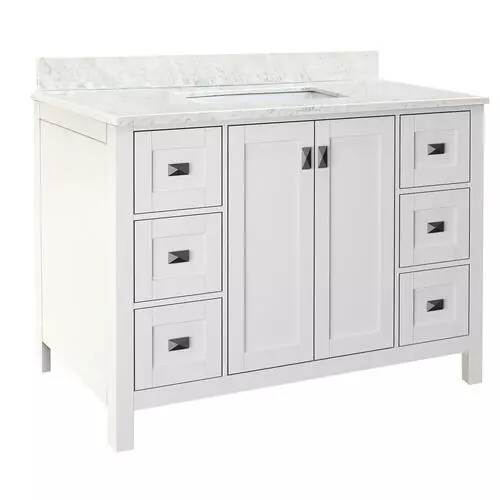 Tuscany® Rio 48″W X 22″D White Vanity with White Carrara Marble Top & Rectangular Undermount Bowl
