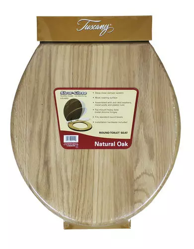 - Available for quick shipping and backed by a satisfaction guarantee, the Tuscany® Round Natural Oak Wood Slow-Close Toilet Seat is a reliable and stylish choice for your home.