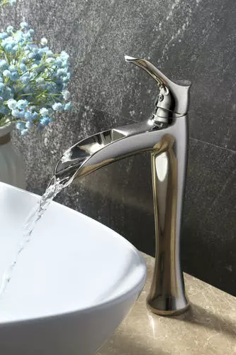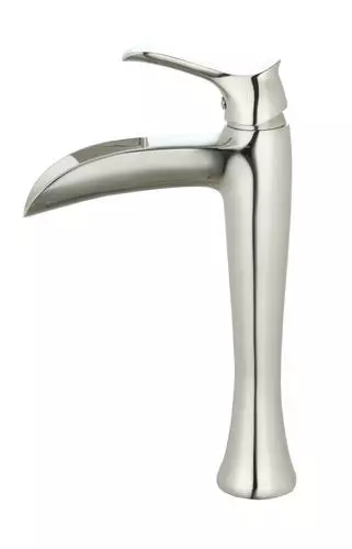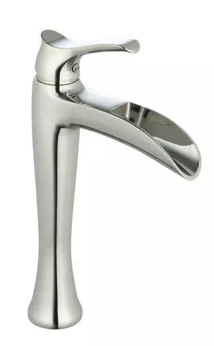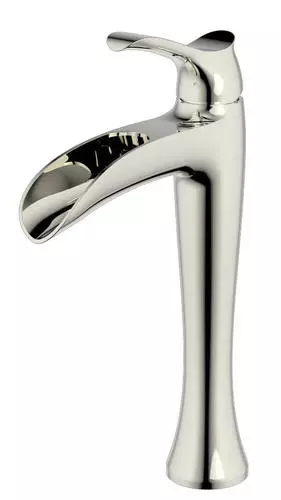 The Tuscany® Tangier one-Handle vessel bathroom faucet in a polished nickel finish has a beautiful waterfall design. This vessel bathroom faucet features a 7-3/4″ high and 6-1/16″ long one piece solid cast brass spout with a zinc handle. The Tangier is a single hole installation that includes a unique push-style pop-up drain that accommodates lavatories with or without overflows. This faucet is 100% pressure tested and has a limited lifetime warranty for years of worry free use. All Tuscany® bathroom faucets use premium ceramic cartridges for years of drip-free use.