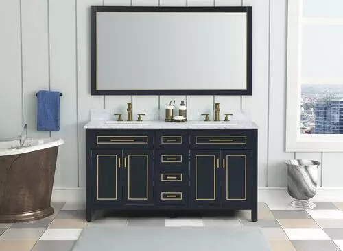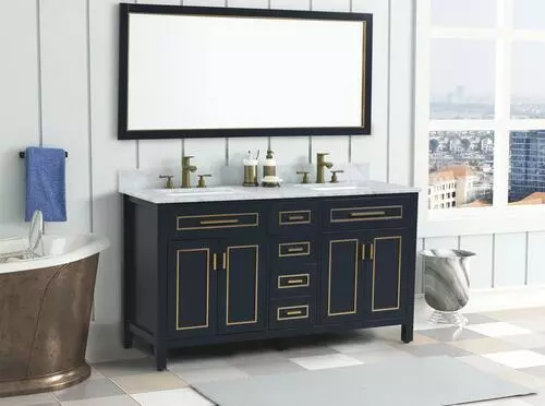 - Elegant Design: The Tuscany® Tirana 60″W Blue Vanity combines a stylish blue finish with a sophisticated Carrara Marble Top, adding a touch of luxury to any bathroom.