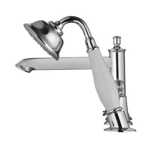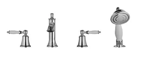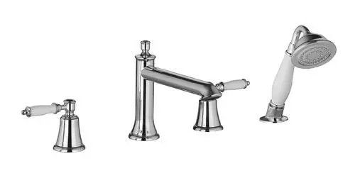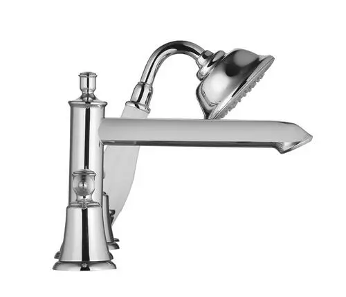 The Tuscany Winterset roman tub faucet, in polished chrome, can be installed with or without the handheld shower (hardware included). This faucet features a wide spread design, an 86″ hose for the handheld shower, and interchangeable zinc and ceramic handles. The one piece solid cast brass spout is 3-3/4″ high and 7″ long. This faucet uses 1/4 turn premium grade high flow rate ceramic disc cartridges for years of drip free use.