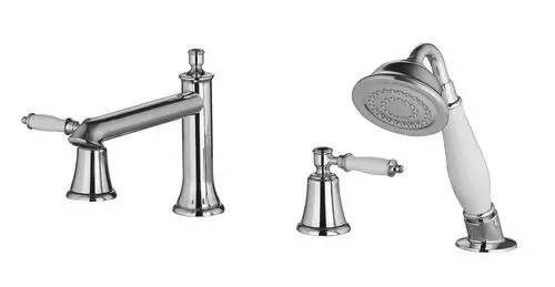 - Widespread two handle design with interchangeable zinc & ceramic inserts