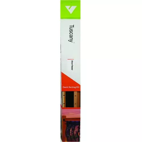 Vista Railings Tuscany style Deck Railing Kit offers everything you need for between the posts in an all-in-one kit box. Including factory precision pre-drilled rails that speeds up and simplifies the assembly process. Convenient rail hang brackets with screws makes attaching the rails to your posts simple. Featuring beautifully curved balusters with a horizontal accent bar. Engineered to National Building Code for guardrails.